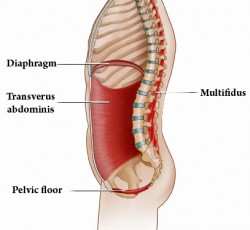 The deepest core muscle. A corset like muscle that wraps around the abdomen connected to the pelvis and spine. Support posture and protects the pelvis and spine during movement.